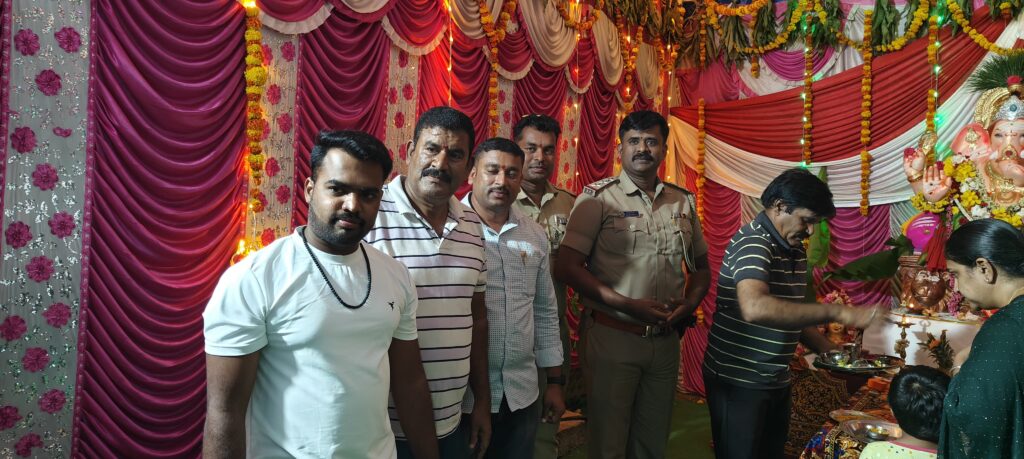 ಇನ್ಸ್ಪೆಕ್ಟರ್ ಬೇಟಿ : ಪಟ್ಟಣ ಪೊಲೀಸ್ ಠಾಣೆಯ ಇನ್ಸ್ಪೆಕ್ಟರ್ ಪಿ ಆನಂದ್ ಮೂರ್ತಿ ಸಿಬ್ಬಂದಿ ವರ್ಗದವರು ಭೇಟಿ ನೀಡಿ ವಿನಾಯಕ ನಗರದ ಎರಡನೇ ಹಂತದ ಗೋವಿಂದ ನಾಯ್ಡು ಲೇಔಟ್ ನಲ್ಲಿ ಪ್ರತಿಷ್ಠಾಪನೆ ಮಾಡಲಾಗಿರುವ ಗಣಪತಿ ಪೂಜಾ ಕಾರ್ಯಕ್ರಮದಲ್ಲಿ ಭಾಗವಹಿಸಿ ಅವರು ನಿವಾಸಿಗಳಿಗೆ ಶುಭ ಹಾರೈಸಿದರು.